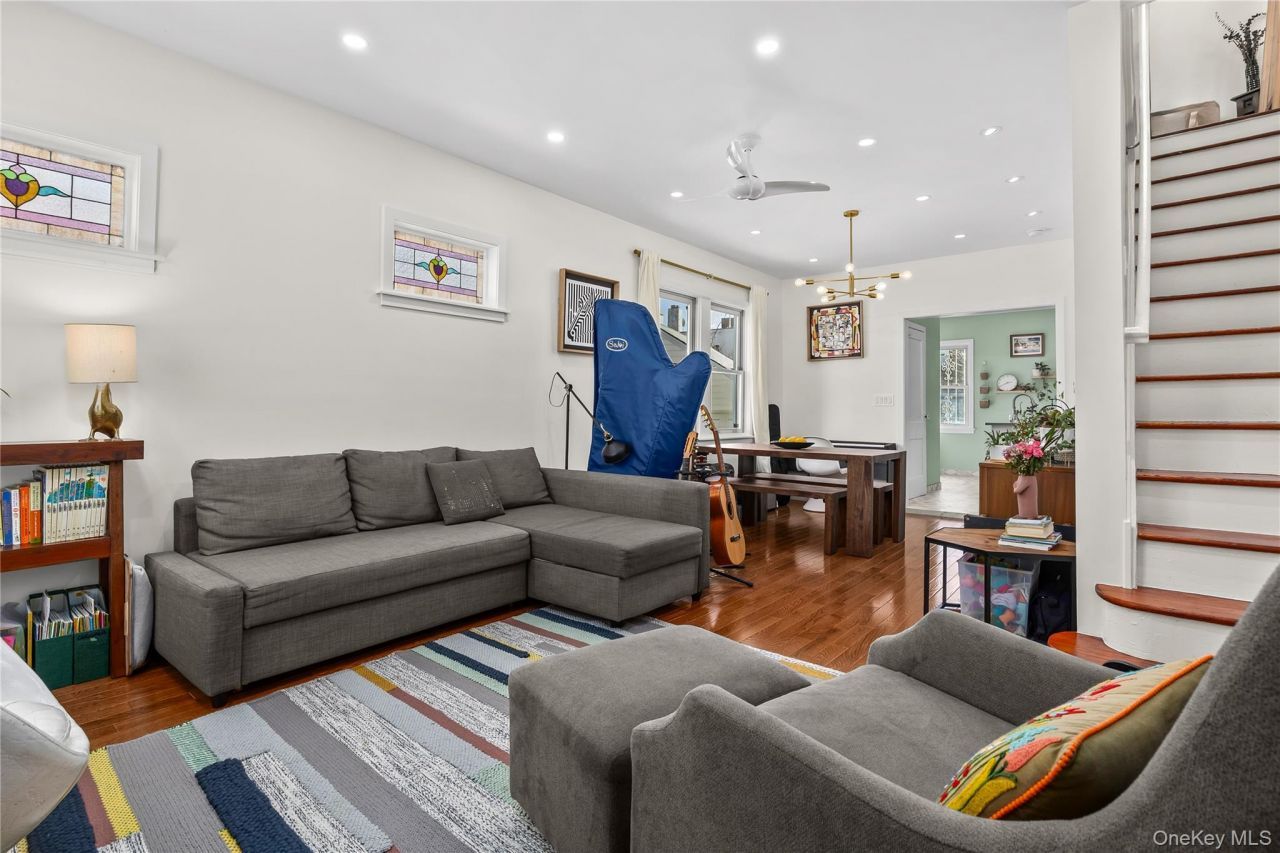 House is a semi-detached, frame, one family house, built in an irregular lot and has a fully detached 2 car garage and has a driveway for two other cars. It also has a private backyard. Kitchen and bathrooms have been remodeled. It has all updated electricity, recessed lighting in the first floor. Windows all around that allows for lots of natural light. Hardwood floors. Located in the heart of Woodside, walking distance to #7 train, LIRR and private transportation. Steps from the shopping area on Roosevelt Ave, schools and places of worship.