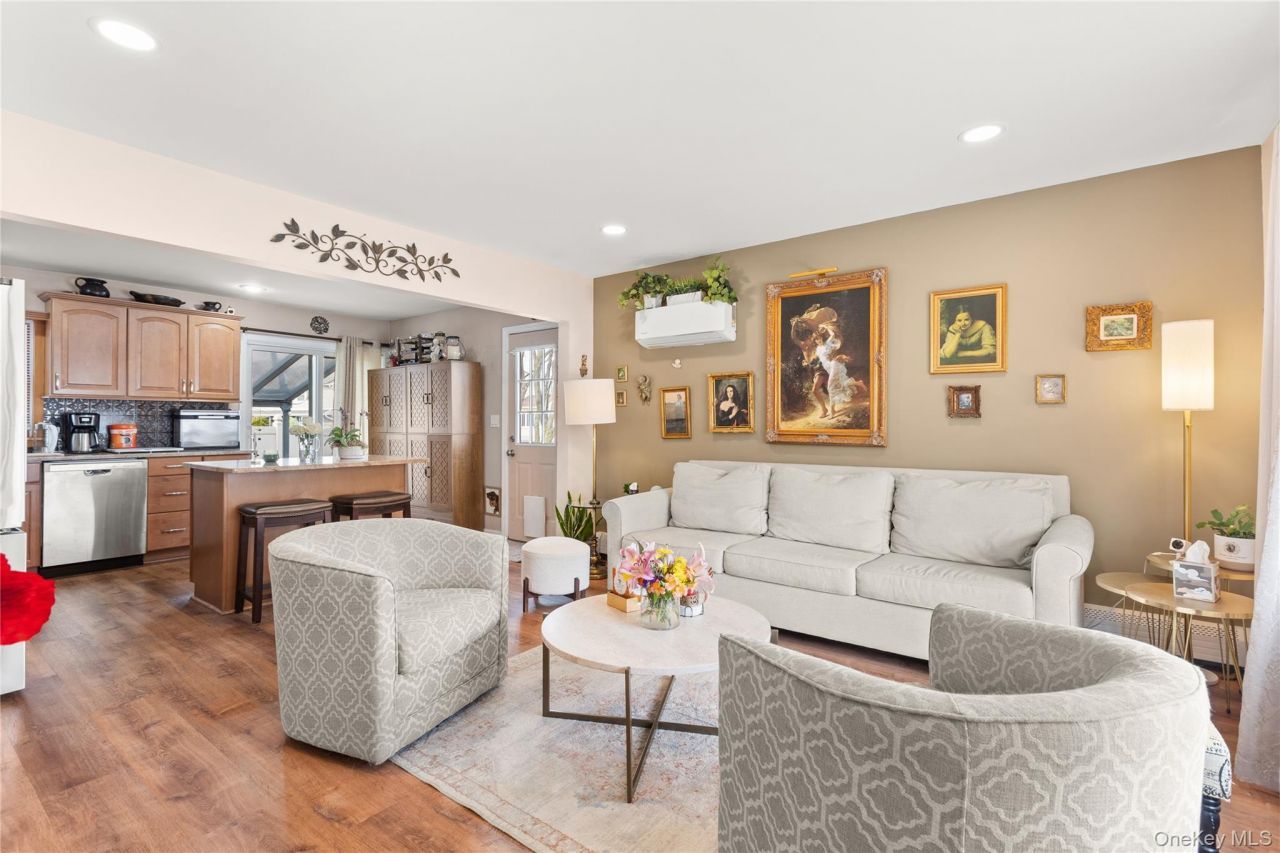 Welcome to 8 Garden Blvd in Hicksville! This charming Cape Cod-style home, perfectly situated on a desirable corner property, offers the ideal blend of comfort, functionality, and thoughtful updates throughout. Step inside to a bright and inviting living room featuring a split-unit system for year-round comfort. The eat-in kitchen is well-appointed with stainless steel appliances, including a brand-new refrigerator and dishwasher, making it both stylish and practical for everyday living. The first floor boasts a generously sized primary bedroom and an updated full bathroom-perfect for convenient one-level living. The home also features a basement with a separate outside entrance, offering great potential for additional space, storage, or flexible use.Outside, enjoy your own private retreat with a beautifully designed paver patio, ideal for entertaining or simply relaxing. The fully fenced corner lot provides added privacy, extra yard space, and exceptional curb appeal. Whether you're looking for room to grow, space to entertain, or a place to truly call home, this property delivers comfort and versatility in a prime location-just minutes away from LIRR , shopping, transportation, parks, and major roadways. A fantastic opportunity to own in Hicksville-don't miss it!